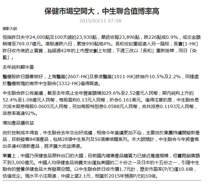 Large Space of Healthcare Supplements Market, High Value of Sinolife's Zhi Bo Rate