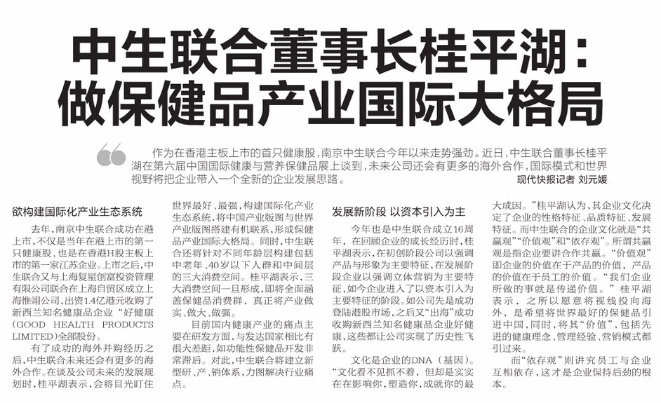 Chairman of Sinolife Mr.Pinghu Gui: Gigantic Structure of International Supplements Industry Time錛?015/7/2 source錛氭湰绔檖ageviews錛?023